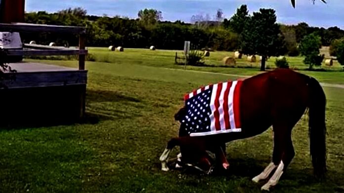 When Landyn gave the command, the horse fell to her knees in a deep bow. “We never imagined the response we would get,” said Autumn Winkler, Landyn’s mother. “She simply wanted to show her utmost respect to veterans and their families for the sacrifices they have made to allow her to have the life she has today.”