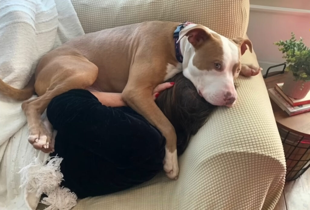 The encounter on the highway was just the start of a remarkable journey for Molly and Polo. Polo, a Pit Bull, instantly showed his gratitude through affectionate gestures, showering Molly with what she felt were “thank-you kisses.” It was a moment of pure connection, one that Molly instinctively knew was the start of a lifelong companionship. Despite the immediate bond, logistical challenges loomed ahead. Residing in Massachusetts and having found Polo in Alabama meant that Molly was faced with a month-long process to legally bring Polo to his new home. This period of waiting did not dampen her spirits; instead, Molly took to sharing Polo’s rescue story, drawing attention to the plight of abandoned dogs and the misconceptions surrounding Pit Bulls.