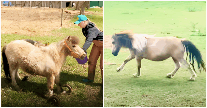 Stella the Pony, once suffering from severely neglected hooves, found a new lease on life thanks to the compassion of Julia Cesario. Residing with an elderly couple in Springwater, Ontario, who could no longer tend to her needs due to their advancing age, Stella’s hooves had grown so long that walking became a painful challenge. When Julia learned of Stella’s plight, she didn’t hesitate to intervene. She rescued the pony and brought her to her own farm, determined to restore the animal’s health and mobility.