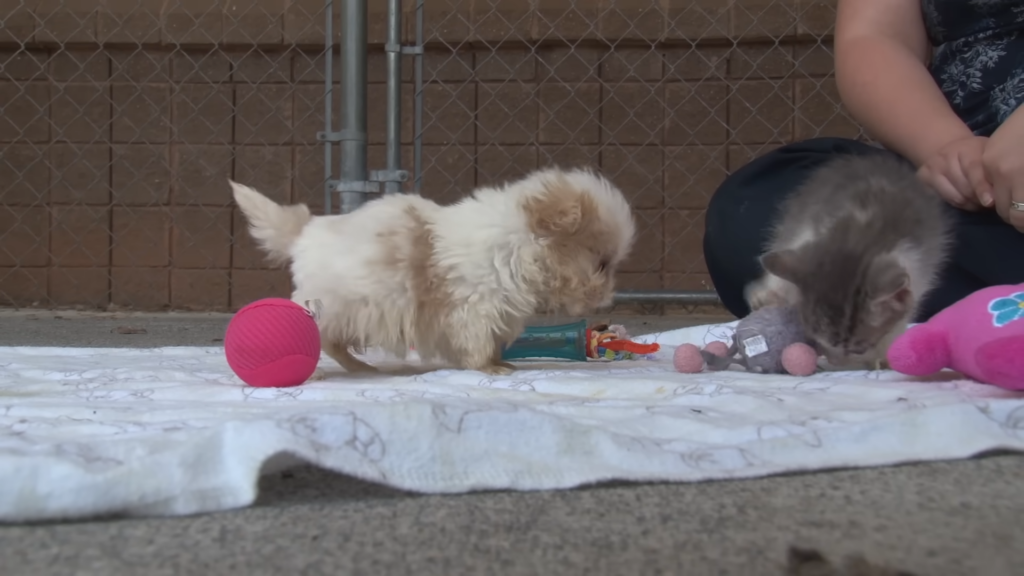 In a world where every creature seeks companionship and a place to call home, the story of Ruggles the Shih-Tzu and Chompers the kitten unfolds, reminding us of the resilience of animals and the beauty of new beginnings. Ruggles, a sweet-natured dog with a past shadowed by neglect, was given a chance to start anew in an area where the promise of a brighter future seemed possible. It was here that Ruggles found a companion in Chompers, a tiny kitten with a survival story of her own. Chompers’ journey began under less than promising circumstances, discovered abandoned beneath a porch when she was merely two days old. Despite their challenging starts to life, both Ruggles and Chompers found themselves on a path to recovery, marked by an adorable meeting that not only signified their resilience but also the beginning of their healing process.