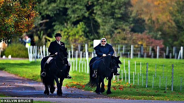 It seems that age is just a number for Queen Elizabeth of the United Kingdom, who at 93, was spotted enjoying a horseback ride at Windsor Castle on 11th November, a Monday morning. The queen was seen accompanied by Head Groom Terry Pendry. He is the person responsible to take care of the queen’s horses. She looked very fashionable wearing a long blue navy coat, a white headscarf, and round vintage sunglasses.