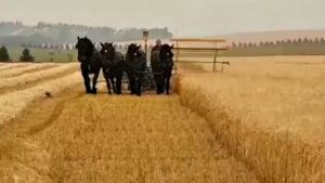 What you are going to watch in this video is cutting a barley field and as much as we look at them we just can’t get enough. There are horse owners and lovers out there who don’t want to have to do with tractors and this is one of them but there are also people who by seeing what these horses can do they just might think of switching from a tractor-only operation to a draft horse one.