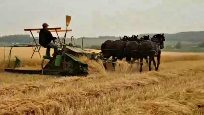 What you are going to watch in this video is cutting a barley field and as much as we look at them we just can’t get enough. There are horse owners and lovers out there who don’t want to have to do with tractors and this is one of them but there are also people who by seeing what these horses can do they just might think of switching from a tractor-only operation to a draft horse one.