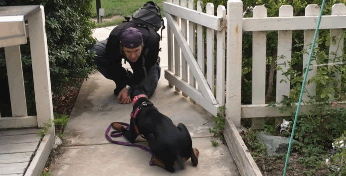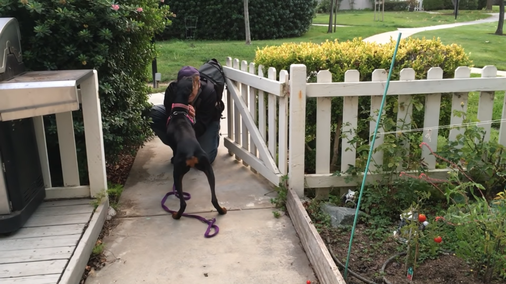 Kira’s dad teases her from the other side of the gate, turning this everyday reunion into a heartwarming testament to their relationship and the effectiveness of their dog training. Despite her overwhelming desire to jump over the gate, Kira waits obediently for the signal to approach, a symbol of her respect and understanding of the boundaries set by her dad. This moment of anticipation, filled with tail wags and barely contained excitement, captures the essence of the trust and communication between Kira and her family.