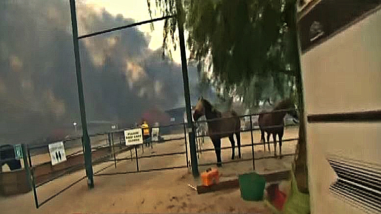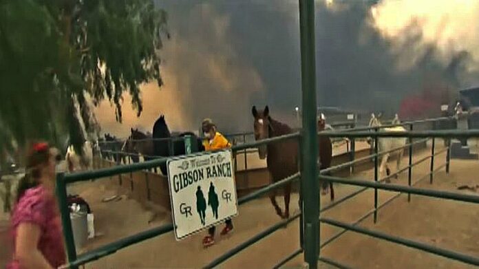 Then, they turn to some extraordinary footage. As black smoke clouds the air and flames grow in the background, brave news reporter Kristine drops everything — in the middle of her newscast — in order to save the lives of stranded horses.
