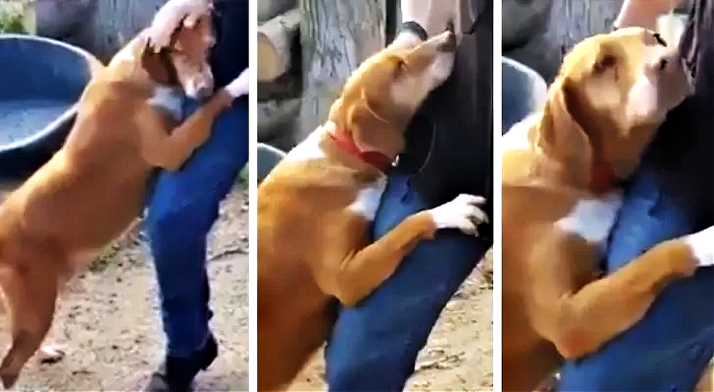 This particular dog, a female with a history as tender as her gaze, watched the reporter not from a distance but with a courage that brought her closer. Unlike her peers, she didn’t just watch; she acted. With a heart full of love and a spirit tired of waiting, she approached the reporter, unleashing an avalanche of affection that was impossible to ignore. The moment was captured on video – a heartwarming interaction that showed the dog hugging the reporter, refusing to let go, her body language screaming a desire for a forever home. The video, a mere 30 seconds long, became a testament to the purest form of love and longing. It showed the dog clinging to the reporter’s leg, resting her head against him in a silent plea that spoke volumes. It was as if she knew he was her chance at a better life, especially after possibly having experienced the hardships of motherhood and survival alone before arriving at the shelter.