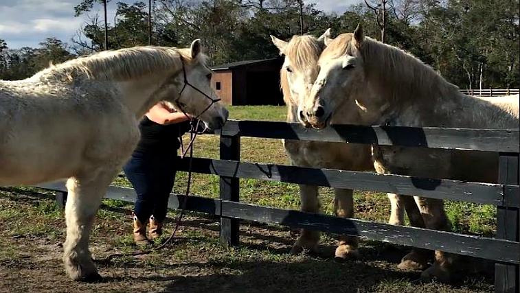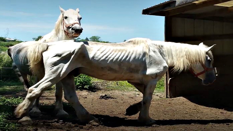 Two beautiful Percheron horses, Luke and Ike, started their lives as carriage horses in Dayton, Ohio. When their owner no longer had a use for them, the horses were discarded like garbage. They were abandoned in a field with no food for a year before they were found. Last Chance Corral stepped in and saved these horses.