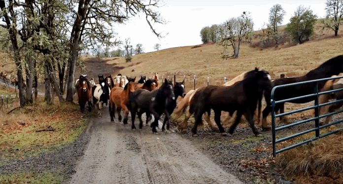 Love horses? Then I think you’ll absolutely love this video. The Duchess Sanctuary, operated by The Fund for Animals in partnership with the HSUS, is an 1120-acre facility located near Oakland, OR. It’s a gorgeous, vast oasis for hundreds of formerly abused, abandoned, neglected, and homeless horses. In the short-and-sweet clip below, the staff is ready to rotate 110 rescued horses to different pastures.