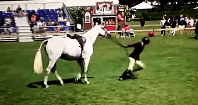 It is really shameful for riders to blame their horses for something they know horses would do, as horses are so unpredictable. But it is even more shameful to kick it when you are the one to make mistakes and not treat it as it deserves. What you are going to watch is a video showing how a rider falls off her horse and blames the horse for what happened.
