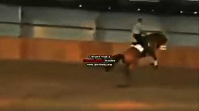 During the video, you will see different attempts from the horse to knock the rider off, however, all of them will be unsuccessful as the rider is trained for such a situation. I believe that the majority of riders wouldn’t be able to stay on. Please have a look at the video and share your opinion with us.