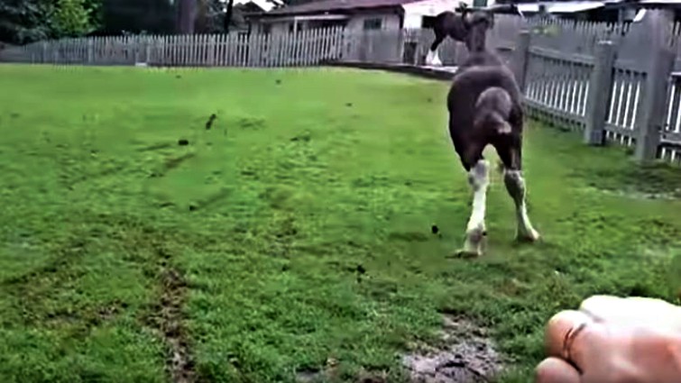 Clydesdale Foal Reminds Visitors He Is The Boss By Kicking Mud At Them