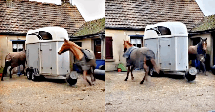 Horses are majestic and beautiful creatures, but they can also be incredibly playful and silly. A recent video that has gone viral on social media captures this playful side of horses in all its glory, and it’s a real treat for animal lovers. The video shows two horses running and playing around a trailer, chasing each other and having a blast. The video starts with two hilarious horses running around the trailer chasing each other. Their movements are so energetic and joyful, it’s hard not to smile along with them. As they chase each other, the horses look like little kids having a great time, and their antics are sure to make you laugh.