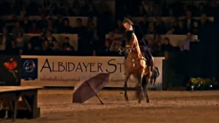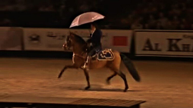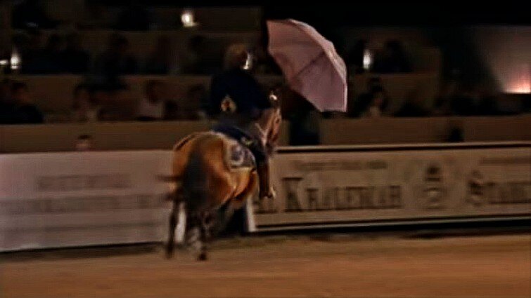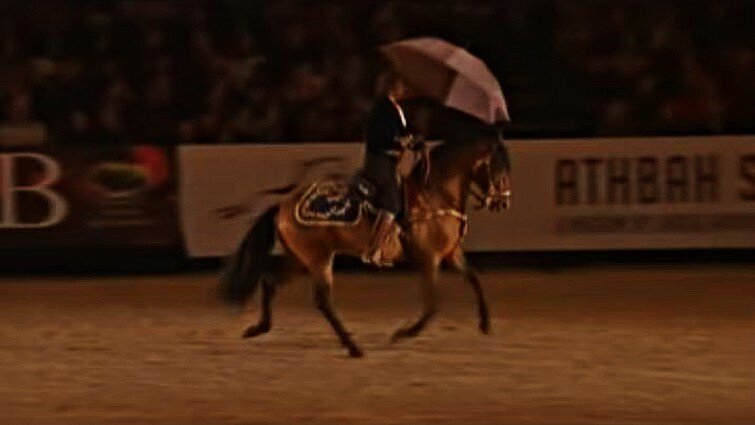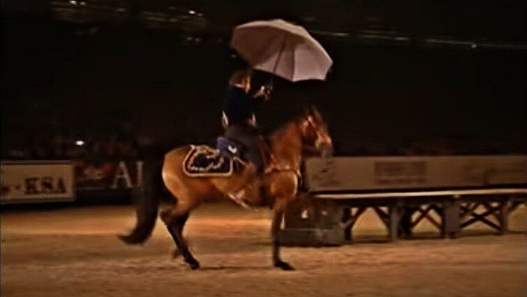 Their theme song was “Singing In The Rain” and we have to say that it really suited the performance. That stunning horse really looks like he is enjoying the performance and keeps dancing to the rhythm of the music. In the beginning, he was just following instructions, but then you could see him get into the spirit. Enjoy the performance!