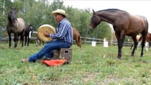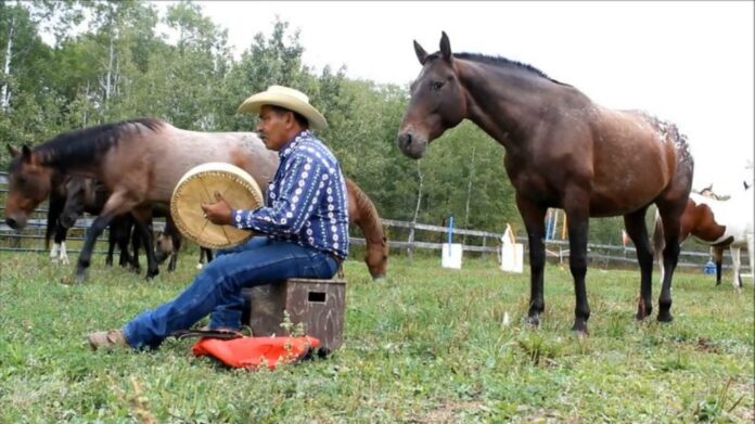 We might have seen man playing tunes to the horses and calling them by playing their tunes. We have found them really fascinating and often wondered how that was possible. But what you are going to watch in this video is a guy who plays a drum and at the same time sings to the horses. This is such a beautiful song sung by a good man who loves his horses.