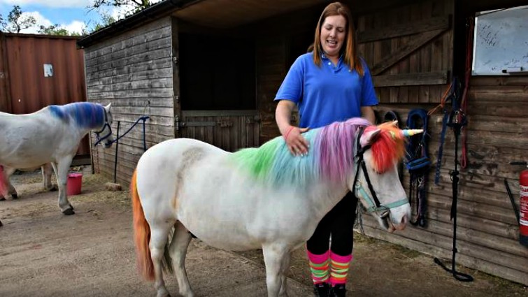With the help of head unicorn groomer, Louise Wickens, she uses special non-toxic “pony paint” to dye their manes and tails all the colors of the rainbow and even uses animal-friendly glitter nail varnish to paint their hooves to perfection. The 37-year-old also adorns her unicorns with braids, flowers and ribbons and of course no unicorn would be complete without a diamante encrusted horn – which she attaches to the bridle. Please have a look at the video below and let us know what you think about her work.