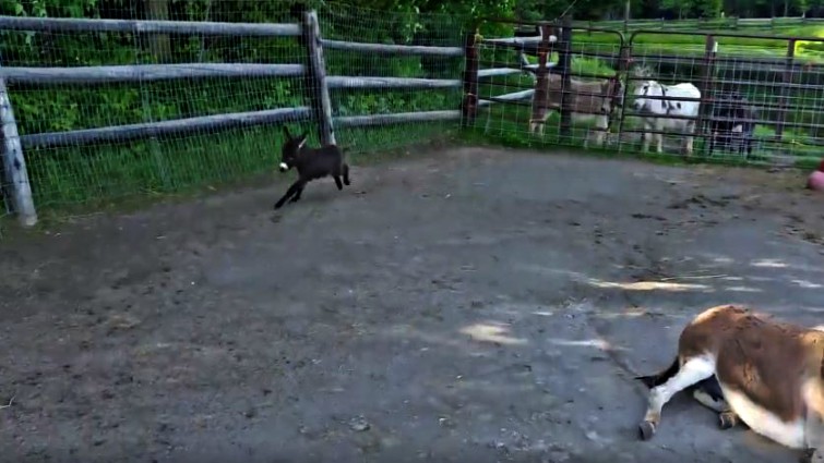 Going back to this baby donkey, he is no different from all these foals that I was talking about at the beginning. He is full of energy and he is running around his mother the whole time, who is not as energetic as he is. I definitely think that he has one of the cutest faces. I would really like at some point to see a baby horse and a baby donkey together. I don’t think there’s anyone that can handle that level of energy and cuteness at the same time. Please have a look at the video and share some love for this adorable baby.