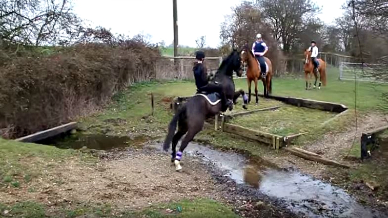 Eddie probably knew nothing when she took her friend’s new dressage horse cross country. It seemed everything so beautiful and amazing till one point when the dressage horse had to jump over water because it was too scared to touch it.
