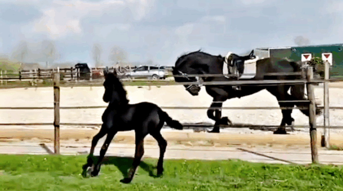 What’s your opinion? Will this lovely foal grow up to become a professional dressage horse? As we can see, he already looks very elegant, confident in his movements, with a straight head and a correct posture. He posses everything that it takes to become a professional dressage horse. I’m sure it is very suitable for dressage performances. Ideally, dressage athletes have an “uphill” appearance, an image of strength, balance, and symmetry.