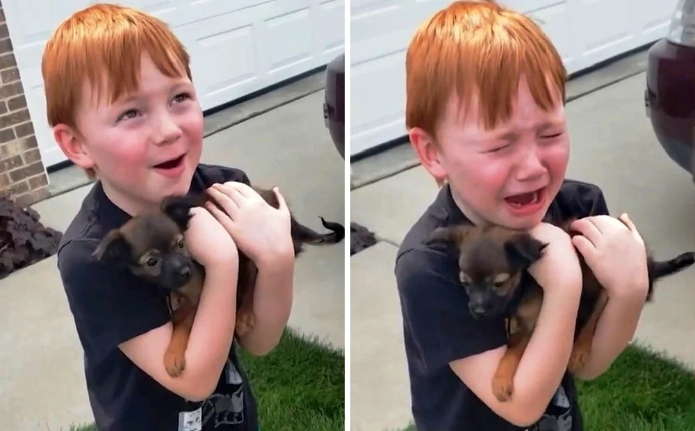 With a gentle prompt from his grandmother, Xander closed his eyes and stretched out his hands, expecting a present, but not in his wildest dreams could he have anticipated what was to come. The emotional crescendo of the video reaches its peak when Xander, eyes wide with shock, finds a cute little puppy placed gently into his arms. The initial attempt to smile and express gratitude was quickly overtaken by the overwhelming surge of emotions, leading to a scene that epitomizes pure joy and gratitude—Xander, tears streaming down his face, holding his new puppy close. This story, while simple, speaks volumes about the impact of kindness, the importance of nurturing dreams, and the unforgettable moments of joy that follow when dreams are realized.