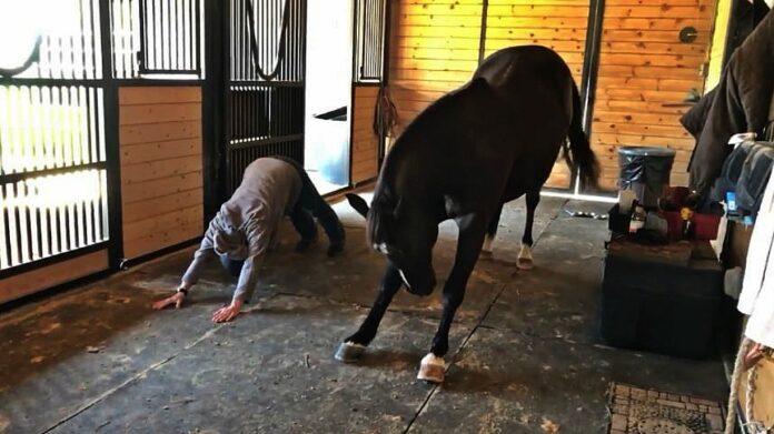 He is following its owner in everything he does and when its owner does a yoga pose, the horse is doing it also. He does the pose and shows amazing ability, he looked like he practiced it before, don’t you agree?! Horses are really intelligent and that’s why they perform so well. They are highly trainable and having these kinds of abilities makes them great performers.
