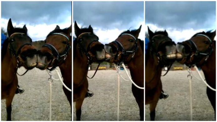 There are many horses out there who have become famous because of their performances or achievements but there are others who attract your attention just by doing funny things and these hilarious horses turn out to give you the time of your life. What you are going to watch in this video is two funny horse who looks like they know they are being captured on camera. It’s like they are doing a horse talking head to head and maybe these lovely horses are telling jokes to each other.