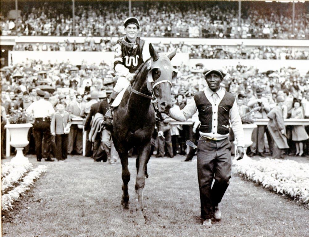 Nicknamed “Mr. Longtail” for his flowing tail, Whirlaway dazzled fans with his powerful finishes. His performance in 1941 captured the hearts of racing enthusiasts.