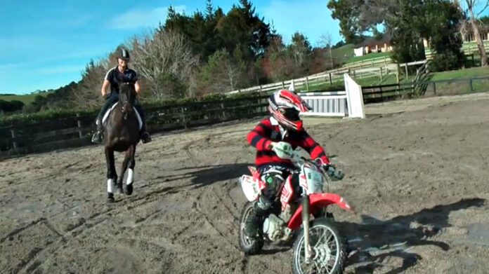 Most horses can be desensitized which usually takes a lot of hard work but there are horses who are more reactive than others and then there are horses who don’t even blink no matter what is around them. What you are going to watch in this video is a clip posted by Brookby Heights International which shows a horse working in extreme circumstances and doesn’t even flinch. Brookby Heights International wrote in the video description, “Ok guys, the joys of selling horses. I keep being asked if this horse is “good with children” the last person asked for “a video” ??? So I have checked just in case I had accidentally advertised her in the “nannies looking for work” section. I haven’t.