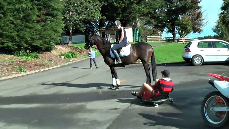 Anyway, today Nouveau Heights, aka Pumba humoured us…. no children or horses were harmed in the making of this video… surprisingly…” Watching the video we come to believe that this horse is a saint as she just minds her own business and doesn’t want to know what happens around her. Watch the video and share your opinions with us.