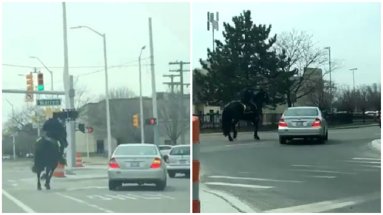 Officer Brandon Murphy of Wayne State University Police Department and Detroit Police’s mounted unit noticed a driver texting and not wearing a seatbelt. He just put his horse Remy on the chase and pulled the driver over and did what he had to do, issued a ticket.