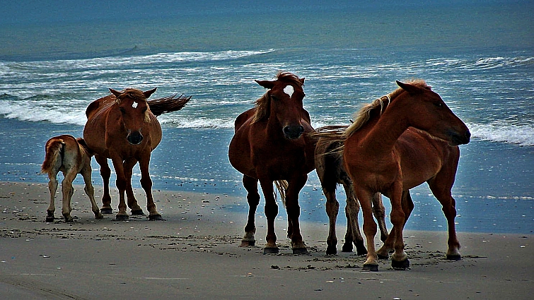 They are called the Banker horses, but also they are known as the Spanish Mustangs cause they were brought by Spanish explorers in the US during the 16th century. During the last year, Outer Banks have experienced rapid development and has become a tourist destination, hence a lot of organizations had to something to protect the population of the wild and at the same time a rare group of Mustangs.