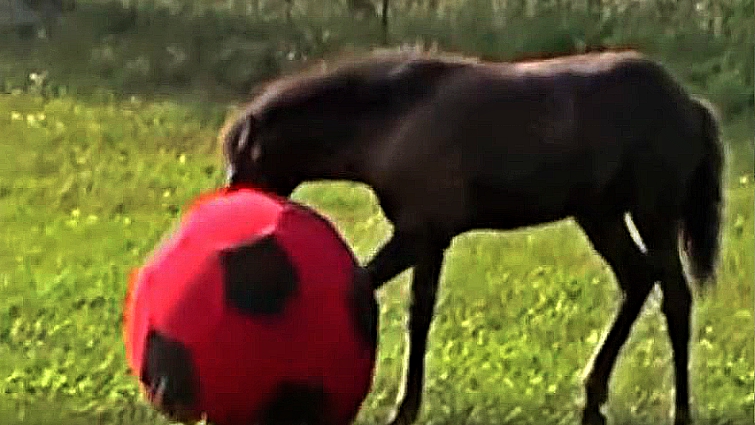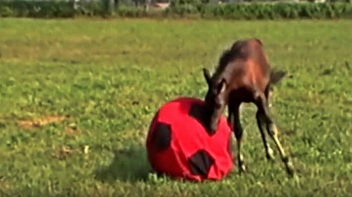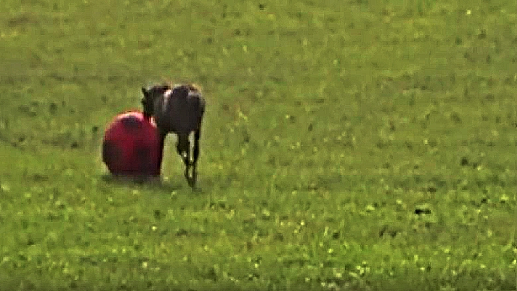 He may be playing on a team of one, but that doesn’t stop him from having the time of his life! He sprints all throughout the space with just as much agility and grace as a standard-size horse. It seems like it couldn’t get any better than his first ball choice, but wait until he switches over to the big guns!