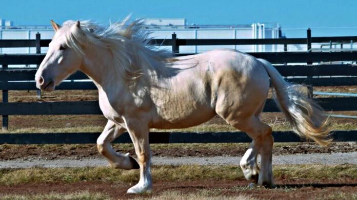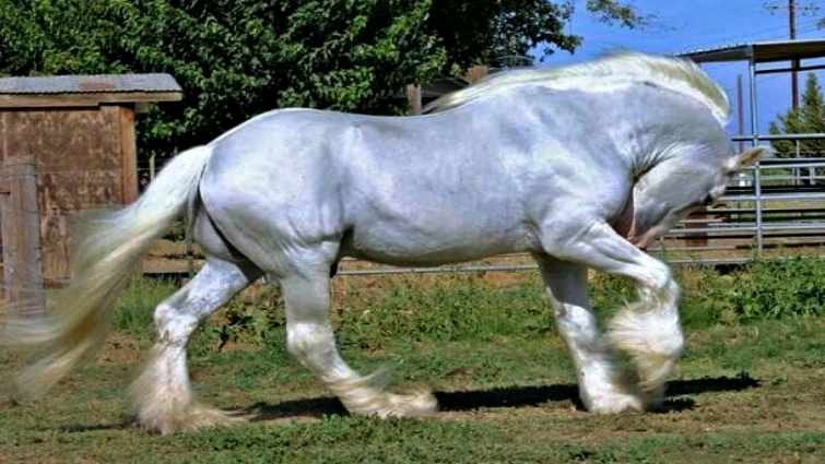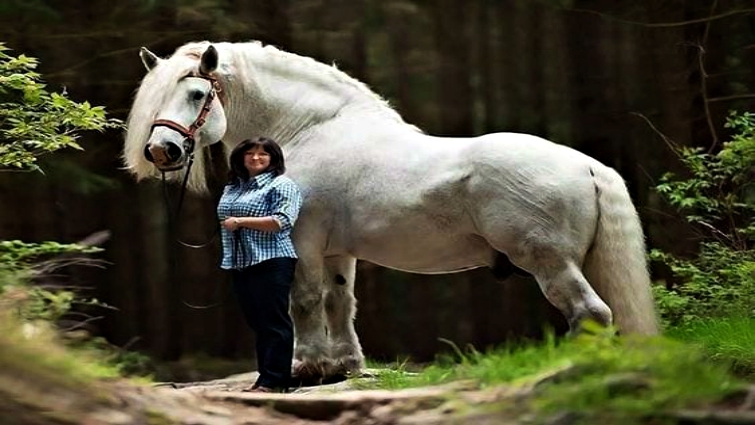 1.This magic white horse’s head and neck alone are bigger than the average person.