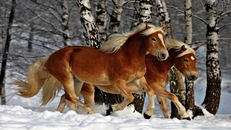 3.Even though the two horses shown in the picture below look so big and heavy, these huge animals are also very fast and flexible.