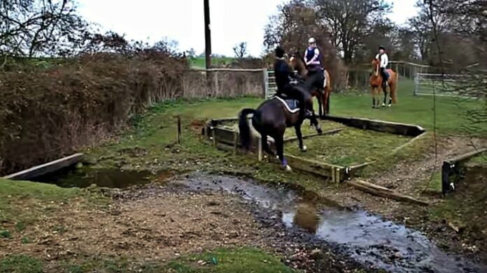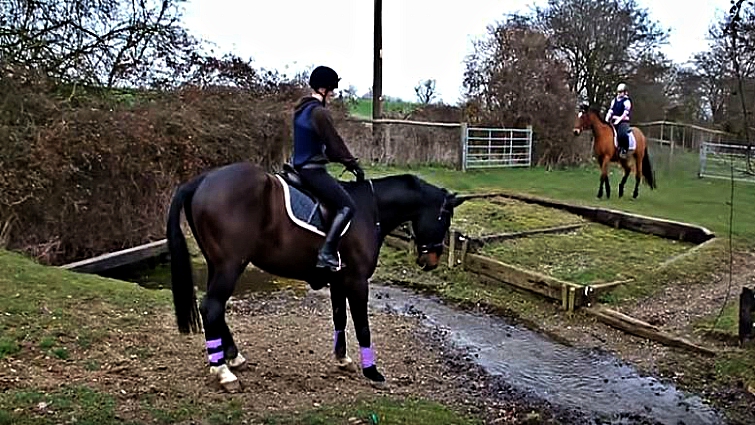 At all. Two riders are walking on top of their horses and the last ones do not seem bothered by the water but at the moment that the third pair comes, the horse would do anything to not touch the water. That is the reason why the owner says that he isn’t an event horse because everything else proves the opposite.