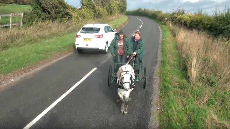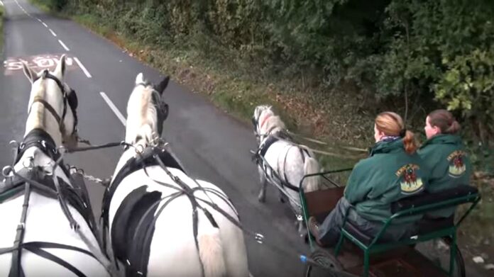 The Shetland in this video is pulling a carriage carrying two people on it and it seems like the little horse responds amazingly to the commands. As a matter of fact, it is an amazing video, the horses are so well-trained, and it is a pleasure to watch happy animals doing what they are asked to do.
