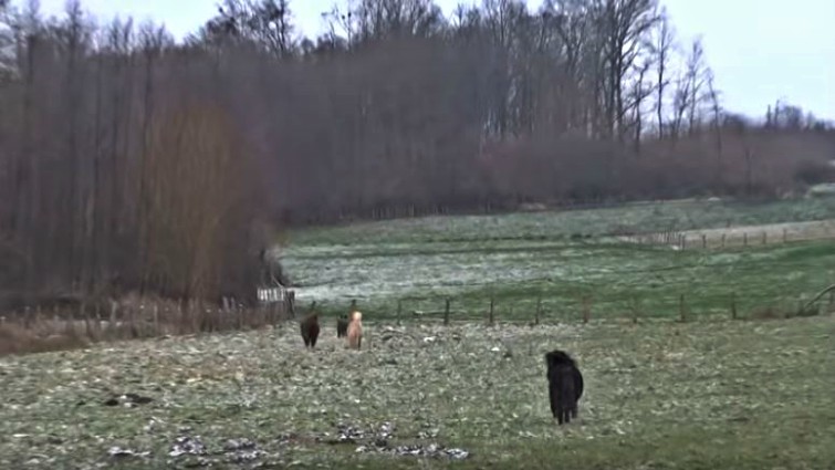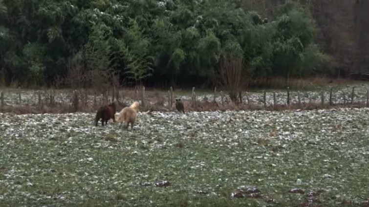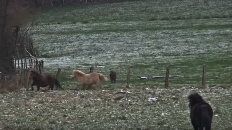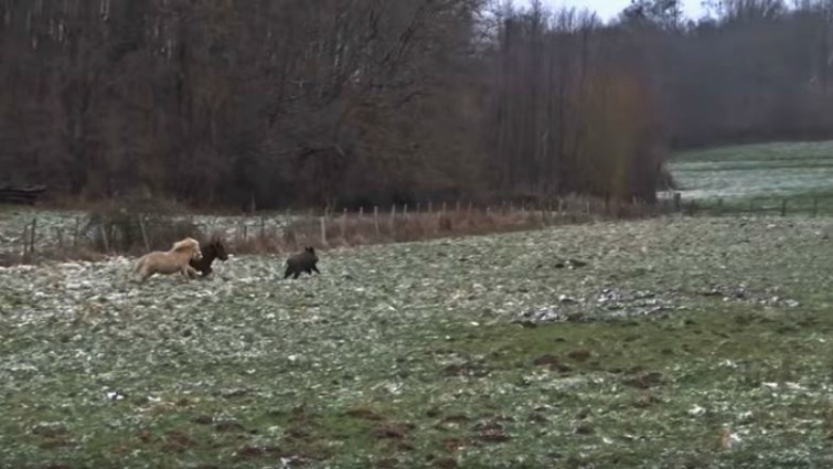 The man seems to notice that something dangerous is coming their way and when they move and the camera shakes we can hear the sound of the hooves approaching. The ponies came to ‘help’, but more than them wanting to save the French couple from the wild boar, it really looks like they are really curious about the new animal who arrived near their house. Well, it is uncertain whether they tried to send him out of the place or they simply wanted to play with him? Let us know what you think after you have watched the video.