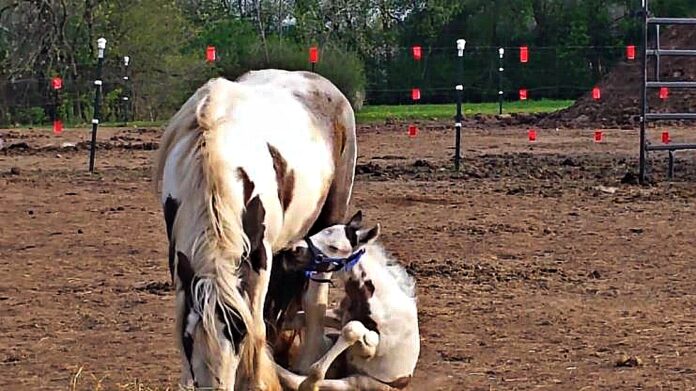 Some other foals feel insecure and take easy steps because of being afraid of doing something for the first time that they have never done before. Steffanie Christensen says the young colt is “just fine” and continued his cavorting after the adorable cute crash. The crush didn’t bother him though.