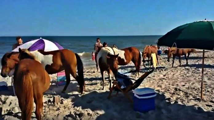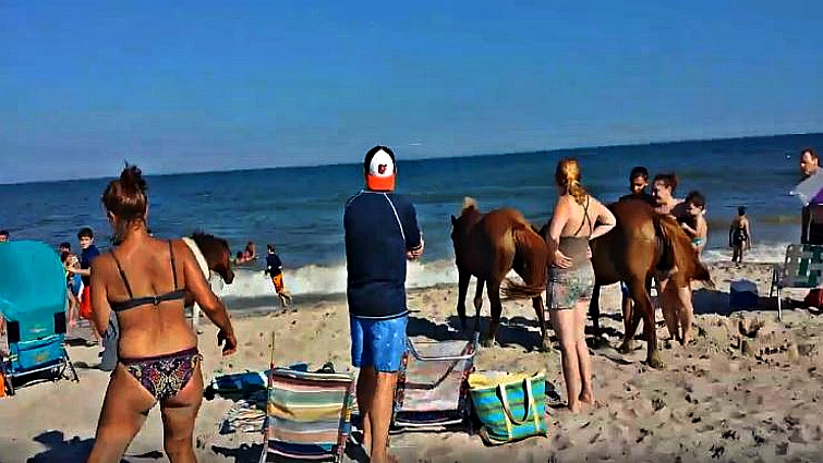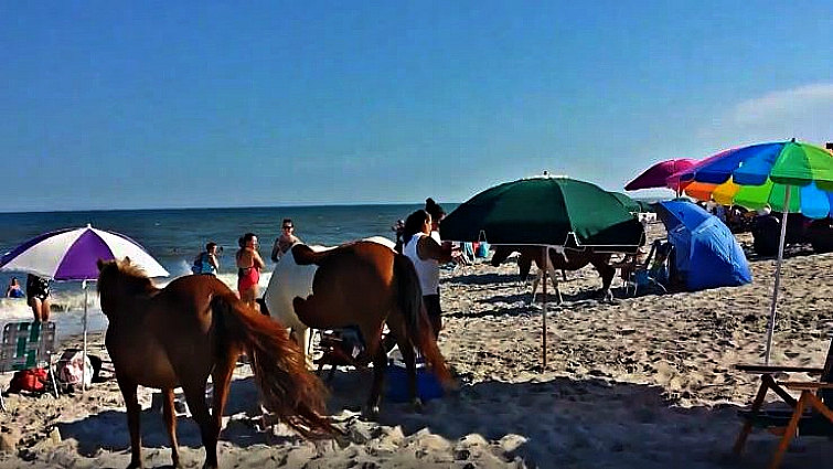 Wild ponies this video of wild ponies storming unsuspecting beachgoers has already been viewed over 6 million times! Assateague Island is the remote barrier island between Virginia and Maryland and is home to a wild horse population of over 300. Wild ponies have called the island home for centuries. One commenter on Facebook remarked, “well, it is their island.”