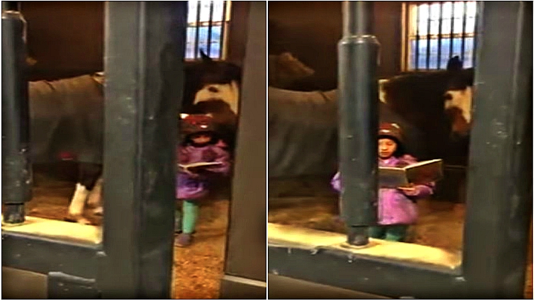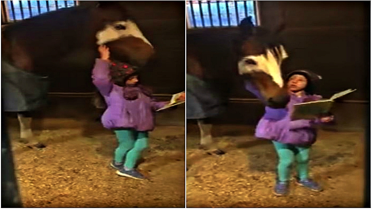 Young Girl Doesn’t Start Her Day Without Reading A Book To Her Lovely Horse